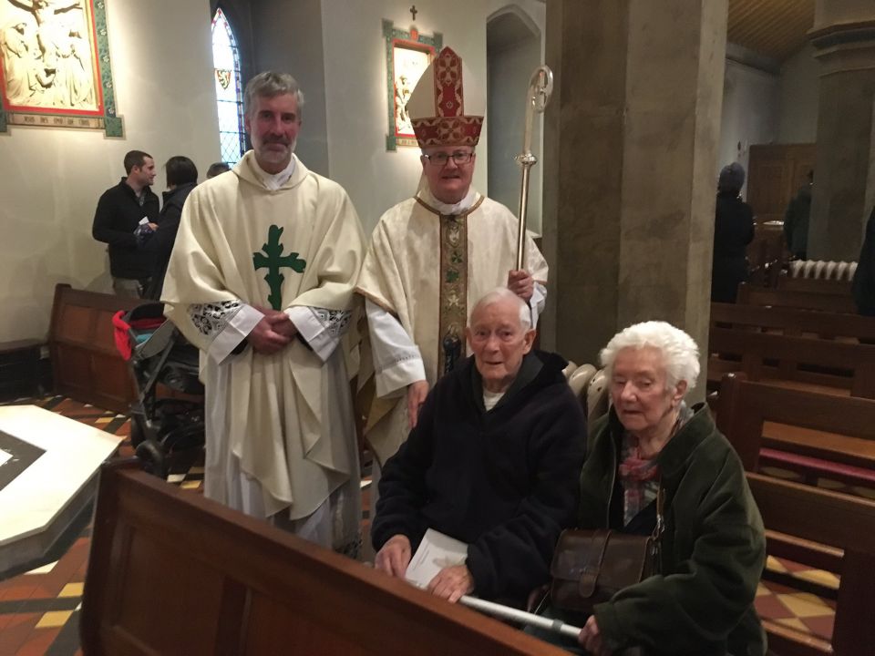As has become traditional, the longest-married couple present (celebrating 62 years married) and our newest married couple present (5 months) were photographed with the Bishop and Fr David Palmer after the Mass.